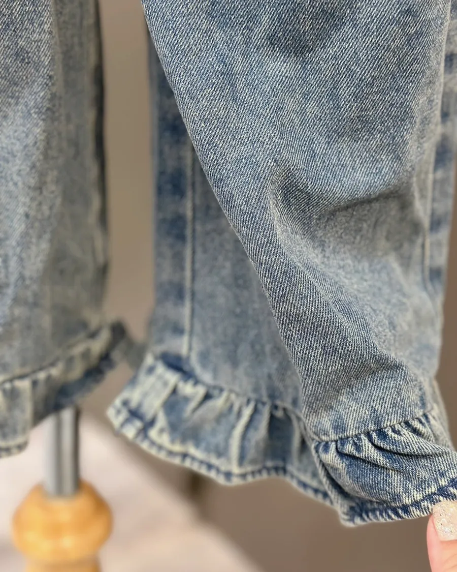 傘邊垂墜喇叭牛仔褲